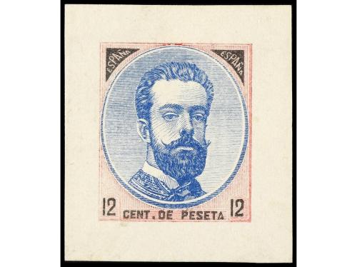 (*) ESPAÑA. Ed. 122. 12 cts. rosa, negro y azul PRUEBA DE PUNZÓN (Gálvez 708) .