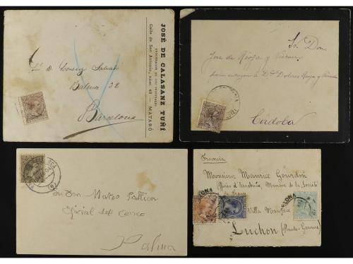 ESPAÑA. 1896-1900. Conjunto de 7 cartas con matasellos de CARTERÍA. INTERESANTE CONJUNTO.