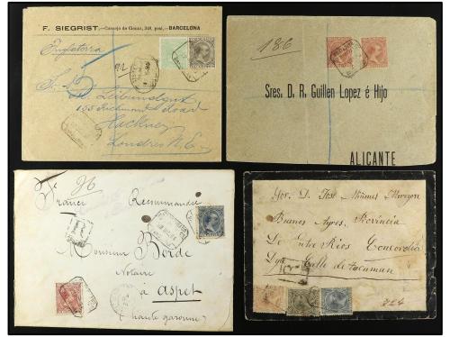 ESPAÑA. 1894-1900. Conjunto de 6 cartas CERTIFICADAS diversos destinos y franqueos.