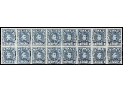 ** ESPAÑA. Ed. 252Na. 50 céntimos azul verdoso. Bloque de 16. Numeración A000.000 al dorso. RARO.