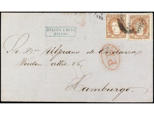 ESPAÑA. Ed. 113. 1871. BILBAO a HAMBURGO. 12 c. mat. parrilla (2). Tarifa de 1 porte.