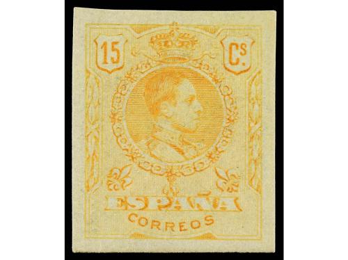** ESPAÑA. Ed. 271s. 15 céntimos amarillo. Numeración para el emitido sólo SIN DENTAR. Cat. 230€.