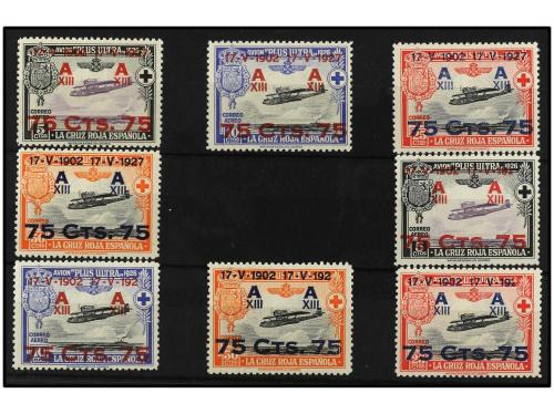 * ESPAÑA. Ed. 388/91 y 388/91t. SERIE COMPLETA, 8 valores, tipo y HABILITACIÓN "192" en lugar de "1927". Cat. 435€.