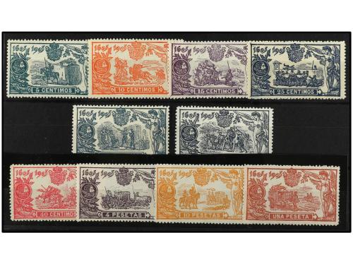 ** ESPAÑA. Ed. 257/66. SERIE COMPLETA. 10 valores. Centrados excepcionales. MUY RARA en esta calidad. LUJO. 40 cts. numeración ceros. 1 pta. cert. GRAUS. Cat. 4.300€.