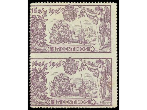 * ESPAÑA. Ed. 259spv. 15 cts. violeta. Pareja vertical SIN DENTAR EN MEDIO. Muy bonita.