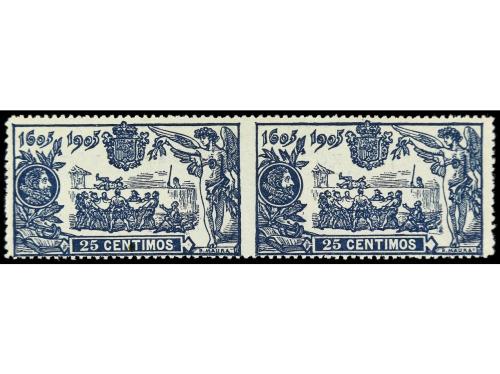 ** ESPAÑA. Ed. 260sph. 25 cts. azul. Pareja horizontal SIN DENTAR EN MEDIO. PRECIOSA y RARA. Cat. 210€.