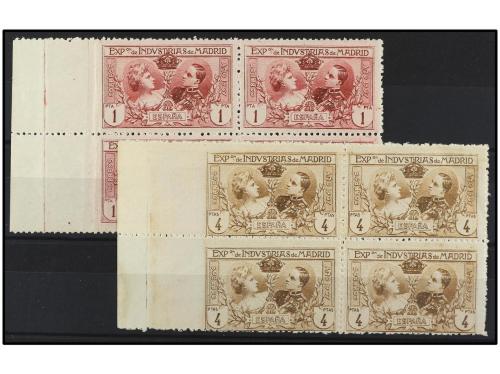 * ESPAÑA. Ed. SR 5, 6. 1 pta. carmín y 4 pts. castaño amarillo. Bloque de cuatro SIN DENTAR MARGEN IZQUIERDO. RAROS.