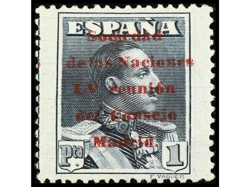 * ESPAÑA. Ed. 448/53M. SERIE COMPLETA. 6 valores. Habilitación MUESTRA en letras gruesas y A 000.000 al reverso. 50 cts. algo descolorido y 1 pta. pliegue habitual del papel. Cat. 420€.