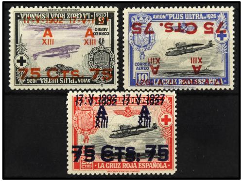 * ESPAÑA. Ed. 388/9hi y 390hh. ERRORES DE IMPRESIÓN. 2 valores, HAB. INVERTIDA y 1 valor DOBLE. Cat. 250€.