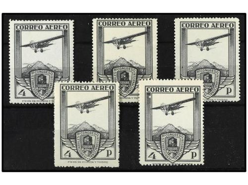 **/* ESPAÑA. Ed. 488r, ra, rb, rc y re. 4 pts. negro. Cinco ejemplares con VARIEDADES DE REPORTE. Raro conjunto. Cat. 441€.