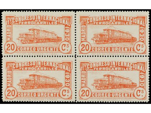** ESPAÑA. Ed. 482. 20 céntimos Urgente, bloque de cuatro. Centrado perfecto. Cat. 520€.