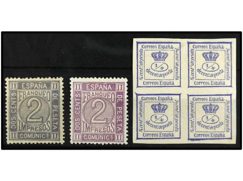 * ESPAÑA. Ed. 115, 116, 116a. 4 cuartos, 2 c. gris y 2 c. violeta. Bien centrados. Cat. 235€.