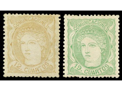* ESPAÑA. Ed. 114. 19 cuartos verde, muy bien centrado. Se incluye Ed. 113 en nuevo y defecto. Cat. 650€.