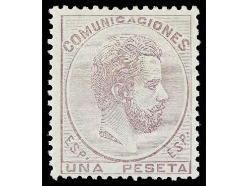 * ESPAÑA. Ed. 127. 1 peseta lila. Muy buen ejemplar. Cat. 155€.