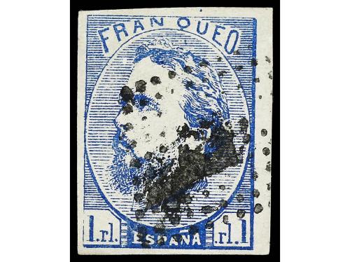 º ESPAÑA. Ed. 156. 1 real azul, mat. estrella y cifra "18" manuscrito. Muy buen ejemplar. Cert. COMEX. Cat. 500€.