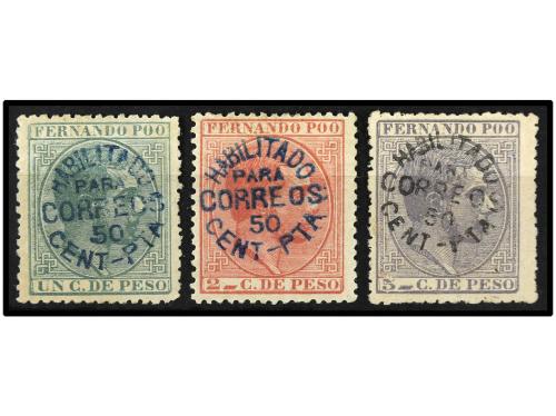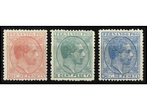 * COLONIAS ESPAÑOLAS: FERNANDO POO. Ed. 9/11. SERIE COMPLETA, 3 valores. Bien centrados. RARA. Cat. 500€.