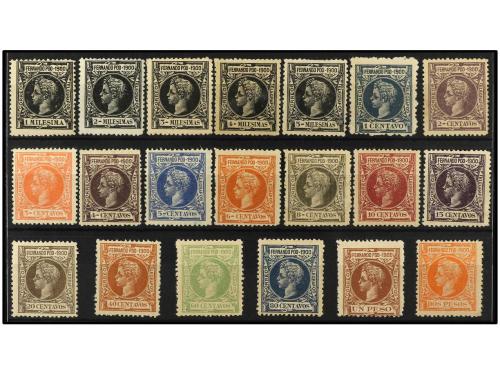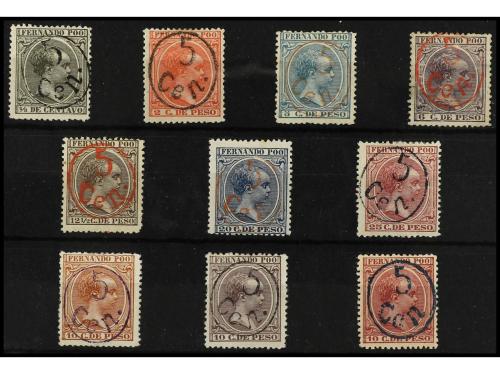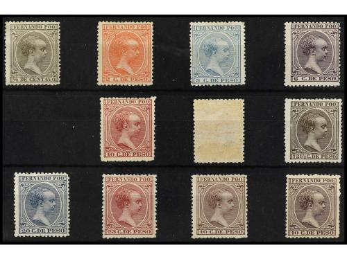 * COLONIAS ESPAÑOLAS: FERNANDO POO. Ed. 12/22. SERIE COMPLETA. 11 valores. 10 cts. castaño amarillento adelgazado. Valor clave (Ed. 16). Cert. COMEX. Cat. 865€.
