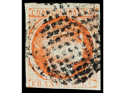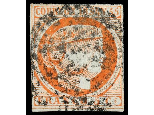 ° FILIPINAS. Ed. 6. 1855. 5 cuartos bermellón, círculo completo. Buen ejemplar, conservación habitual. Cert. CEM. Cat. 1.700€.