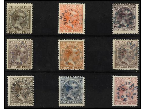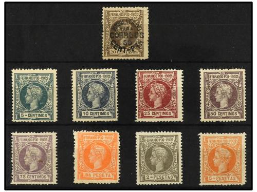 * COLONIAS ESPAÑOLAS: FERNANDO POO. Ed. 31/39. SERIE COMPLETA. 9 valores con habilitación tipo b. MUY RARA. 5 c. sobre 25 c. leve adelgazamiento. Cat. 1.689€.