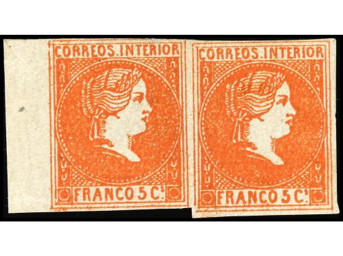 (*) FILIPINAS. Ed. 9 (2). 5 cuartos bermellón. Pareja, borde de hoja. Sello raro, infravalorado en el catálogo. Cert. CEM.