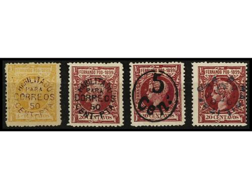 */(*) COLONIAS ESPAÑOLAS: FERNANDO POO. Ed. 70/3. SERIE COMPLETA. 4 valores. Valor clave con goma y habilitación invertida en color azul (Ed. 72hcci). MUY RARO. Cert. COMEX.