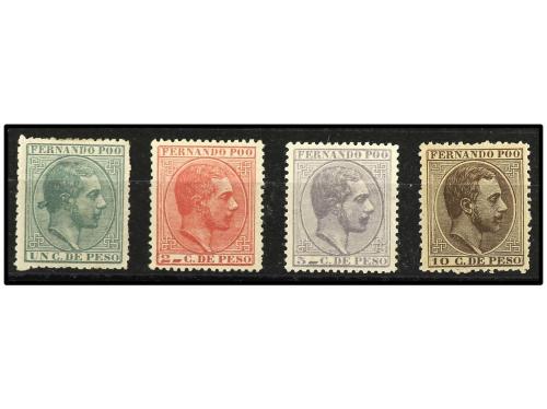 * COLONIAS ESPAÑOLAS: FERNANDO POO. Ed. 5/8. SERIE COMPLETA, 4 valores. Muy bien centrados. 2 cts. sin goma. Cat. +300€.