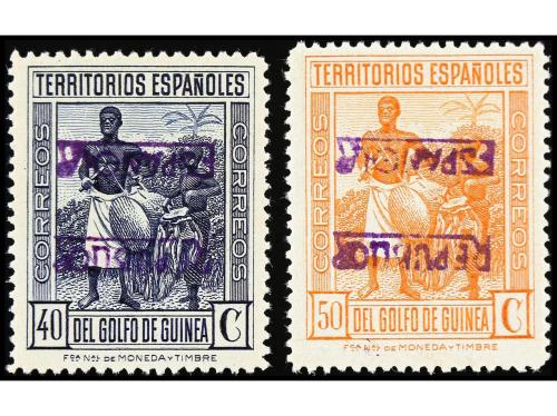 * COLONIAS ESPAÑOLAS: GUINEA. Ed. 224B/225Bhi. 40 cts. azul y 50 cts. naranja HABILITACIÓN INVERTIDA. RAROS.