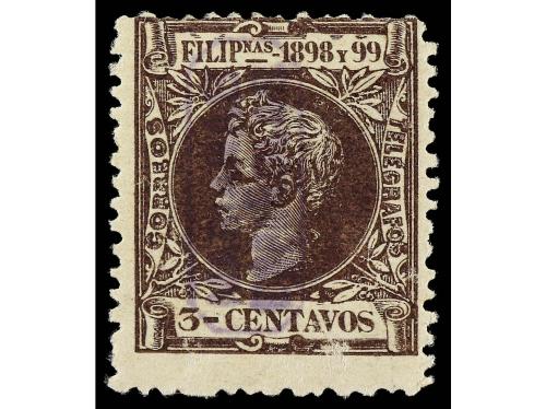 * COLONIAS ESPAÑOLAS: MARIANAS. Ed. 2. 3 centavos castaño. Goma habitual y leve pliegue natural. RARO. Cert. COMEX. Cat. 700€.