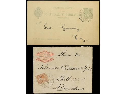 ✉ MARRUECOS. 1894-98. ENTERO POSTAL de 5 cts. verde con fechador del Correo Español de Casablanca y sobre con sello de 10 cts. (defecto en una esquina) con fechador del Correo Español en Tánger.