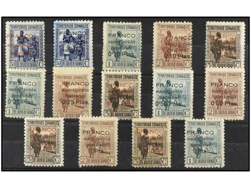 * COLONIAS ESPAÑOLAS: GUINEA. Ed. 1/12, 13/4. LOCALES. SERIES COMPLETAS, 14 valores con habilitación FRANCO SUSCRIPCIÓN NACIONAL. RAROS. Cat. 650€.
