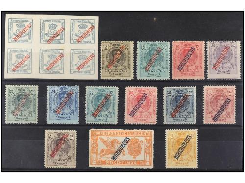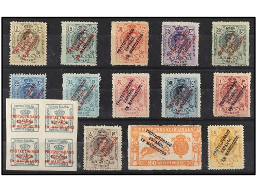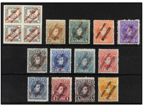 ** COLONIAS ESPAÑOLAS: MARRUECOS. Ed. 29/42. SERIE COMPLETA, 14 valores. Mayoría muy bien centrados. RARA en esta calidad. Cat. +400€.