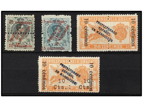 * COLONIAS ESPAÑOLAS: MARRUECOS. Ed. 64/7 y 66hi. SERIE COMPLETA, 4 valores incluyendo un urgente con habilitación invertida. MUY BONITA. Cat. 340€.