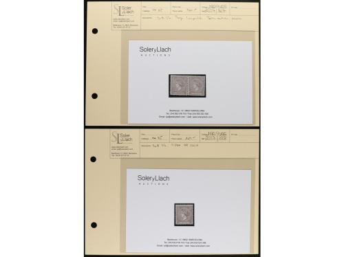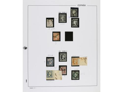 LOTES y COLECCIONES. ESPAÑA. ISABEL II. 1850-1870. Conjunto de 36 fichas de subasta, desde Edifil 1 a Ed. 90. Incluye historia postal, fechadores y marcas sobre Ed. 1; tiras y bloque Ed. 9, sobre y 1 plica Ed. 73; suelto, pareja y bloque Ed. 85, etc. Nuevos y usados. Muy buena calidad. Alta estimación en salidas. Ver fotos en web.