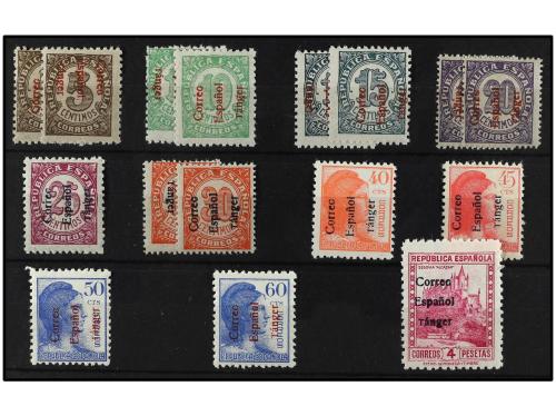 ** COLONIAS ESPAÑOLAS: TANGER. Ed. 96/105 y 107. SERIE COMPLETA a falta del 2 pts. 16 valores incluyendo 5 con habilitación invertida. Todas variedad "Correc" .