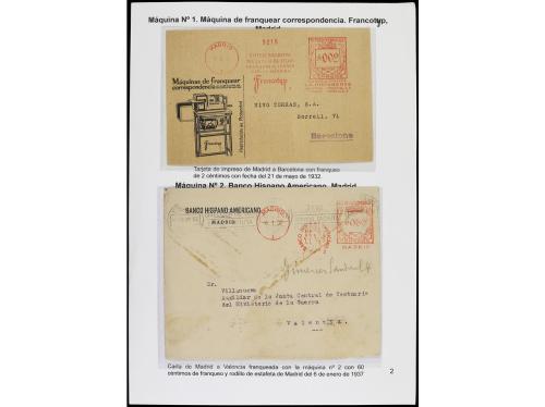 ✉ LOTES y COLECCIONES. 1932-44. ESPAÑA. FRANQUEO MECÁNICO. Colección especializada montada en hojas de álbum con descripciones, diversos modelos, tarifas, franqueos complementarios. MUY INTERESANTE y RARA, contiene alrededor de 160 cartas.