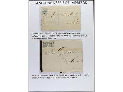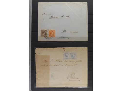 LOTES y COLECCIONES. 1872-1900. ESPAÑA. En páginas de álbum del sello de 1/4 de cto. azul y verde en cartas con diversos franqueos.