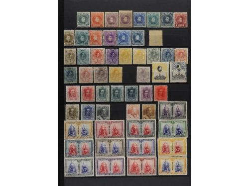 LOTES y COLECCIONES. ESPAÑA y COLONIAS. Conjunto montado en clasificador con sellos, series, hojitas, etc. con distintas variedades. Muchas interesantes. Alto valor en catálogo. Foto en web (ex-10).