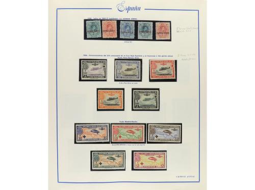 ° ✉ Δ LOTES y COLECCIONES. 1914-1936. ESPAÑA. CORREO AÉREO. Colección en hojas de exposición con descripciones, contiene un total de 50 cartas más algunos sellos y fragmentos con diversos vuelos, algunos del norte de África. CONJUNTO MUY INTERESANTE QUE MERECE EXAMINARSE DETENIDAMENTE.