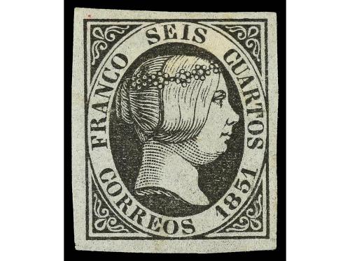 * ESPAÑA. Ed. 6. 6 cuartos negro. PIEZA DE LUJO. Cert. COMEX.