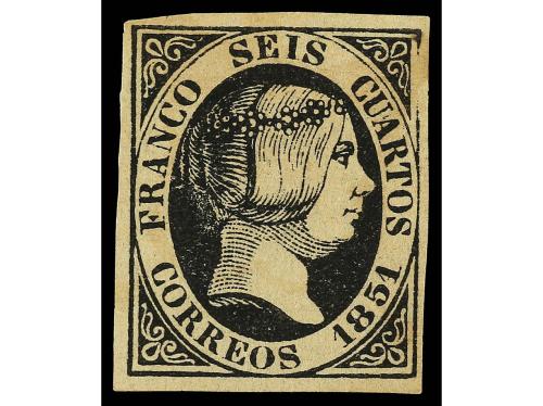 * ESPAÑA. Ed. 6. 6 cuartos negro. Muy bonito ejemplar. Cert. COMEX.