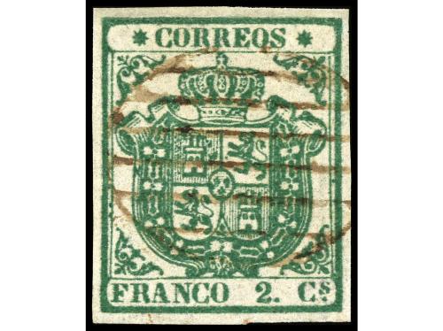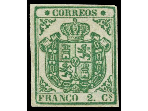 º ESPAÑA. Ed. 32. 2 cuartos verde. PIEZA DE LUJO. Cert. CEM. Cat. 700€.