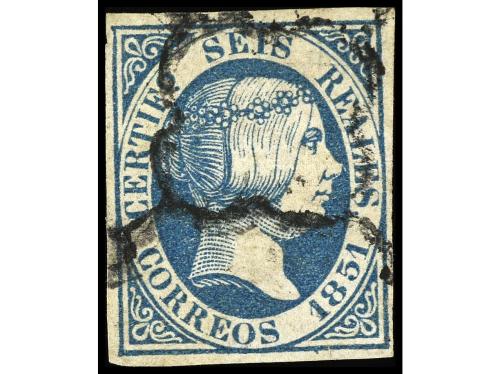 ° ESPAÑA. Ed. 4. 6 reales azul. Tres amplios márgenes. Buen ejemplar. Cat. 825€.
