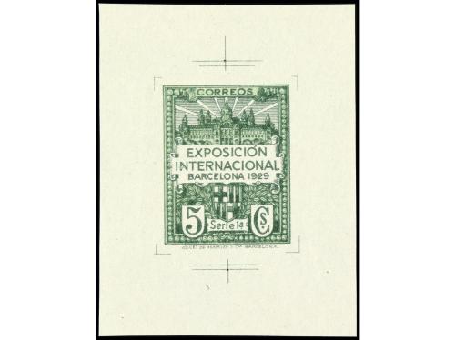 ESPAÑA: AYUNTAMIENTO DE BARCELONA. PRUEBA DEL REPORTE ORIGINAL. 5 cts. verde y verde claro. RARA. (Gálvez B8).