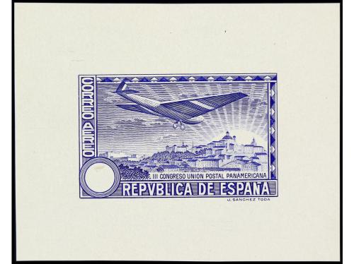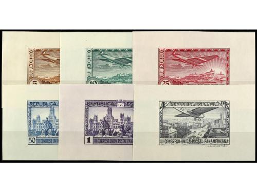 ESPAÑA. UNIÓN POSTAL PANAMERICANA. CORREO AÉREO. ENSAYOS DE PLANCHA. Serie completa a falta del 4 pts. en los colores adoptados.