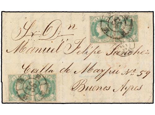 ESPAÑA. Ed. 62 (4). 1862. SANTIAGO a BUENOS AIRES. 2 reales verde (4). Mat. R.C.54 de Santiago. Circulada vía Inglaterra. PRECIOSA. Cert. GRAUS.