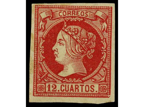 * ESPAÑA. Ed. 53. 12 cuartos carmín. MAGNÍFICO EJEMPLAR. Cert. GRAUS. Cat. 480€.