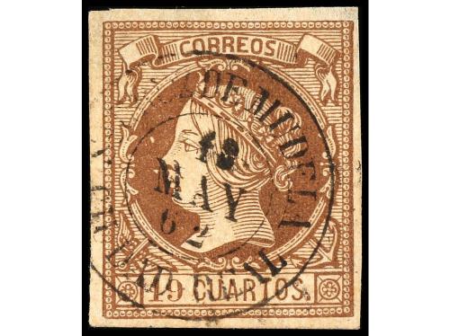 ° ESPAÑA. Ed. 54. 19 cuartos castaño, mat. fechador STA. CRUZ DE MUDELA/CIUDAD REAL. PRECIOSO. Cat. 1.200€.