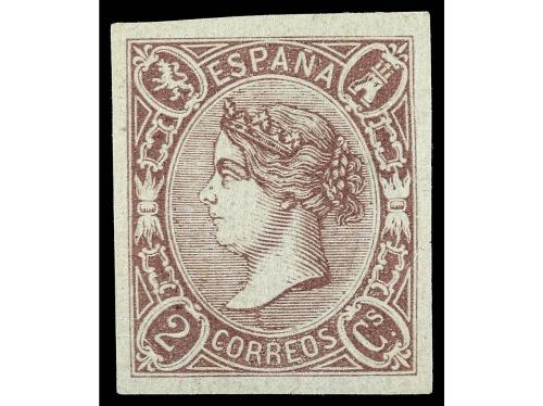 ° ESPAÑA. Ed. 79. 2 reales lila. Centraje perfecto, rarísimo en esta emisión. MAGNÍFICO EJEMPLAR. Cat. 400€.