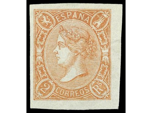 * ESPAÑA. Ed. 73A. 2 reales amarillo castaño. Muy bonito pese a una pequeña arruga en el margen derecho.