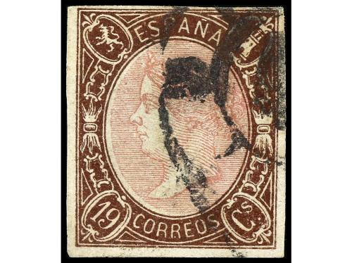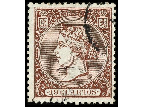 º ESPAÑA. Ed. 77. 19 cuartos castaño y rosa. MUY BIEN CENTRADO y fino matasello. MUY RARO en esta calidad. Cert. GRAUS (ejemplar de calidad) y EXFIMA.